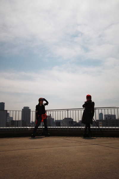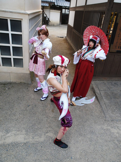 前日は3人ともぐっすり眠ったので、元気でした(笑) この日は男子からだぜ。 ライトアップもいいけど、日中も撮っておきたかったのでvv シルバーの三成ちゃんとピンクの三成ちゃんと楽しく太秦を徘徊vvv 後ろの「大一大万大吉」と下がり藤の家紋がきらめいてました。 武器すげぇ…! 更衣室から出るときにスタッフのおねえさんに「はぁぁ…長宗我部!」って言われたらしい。 あと道行くおねえさんに「あ、長宗我部」とか 「ちかちゃんかわいい~」とか言われました・・・ 元親の人気に嫉妬vvv中身があたしで申し訳ない! 石田三成(MC):蓮夸 石田三成:桜うさぎ 長宗我部元親:ゆき (敬称略) 2着目はシャッフルしてみた。 腹は 無理やり桜さんにお市を着せてみました。可愛いよ、市vvv 蓮夸さんにヌコを勧めたら断られた…!! あっしの阿国さんは某歌姫らしいです。 (Photo by jj様) くのいち:蓮夸 お市:桜うさぎ 阿国:ゆき (敬称略) 2008.10.22 Wed 15:57:16 10月18日 太秦2008.09.25 Thu 16:19:14 倉庫ロケのさしん② |
